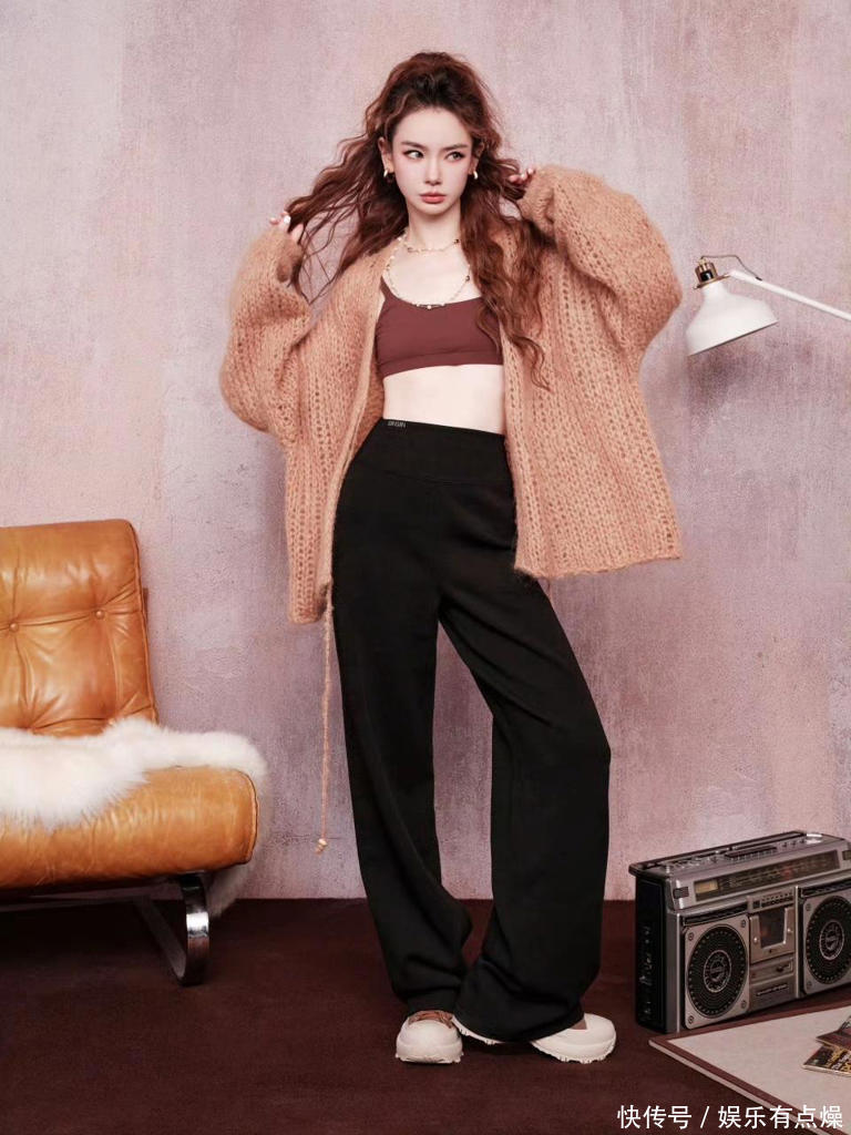 照片中,戚薇随意侧坐,浅棕色粗针织开衫自然垂落,搭配深棕色抹胸,蓬松卷发散落肩头。她的姿态不追求紧绷,而是流露出一种从容自信。那一刻,镜头像被时间放慢,观众仿佛能听见咖啡微微晃动的声响。慵懒并非无心,而是自带力量的选择。正如戚薇多年在舞台和镜头前的磨砺,这种松弛感正源于她对自己的坚定理解:时尚不是取悦他人,而是忠于自己的状态。